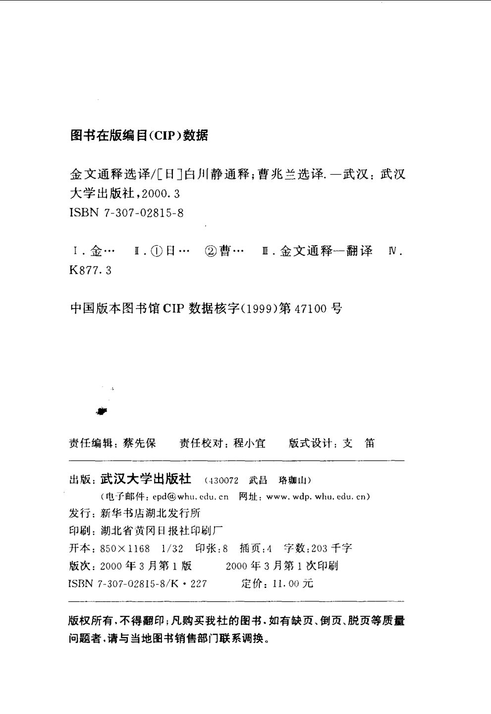 011白川静 - 金文通釋選譯.曹兆蘭選譯.武漢大學出版社2000 .9787307028159.pdf 8.25 MB