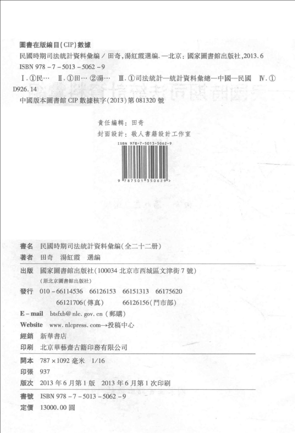 013民国时期司法统计资料汇编 第十三册2013.06田奇;汤红霞选-13955977.pdf 248.59 MB