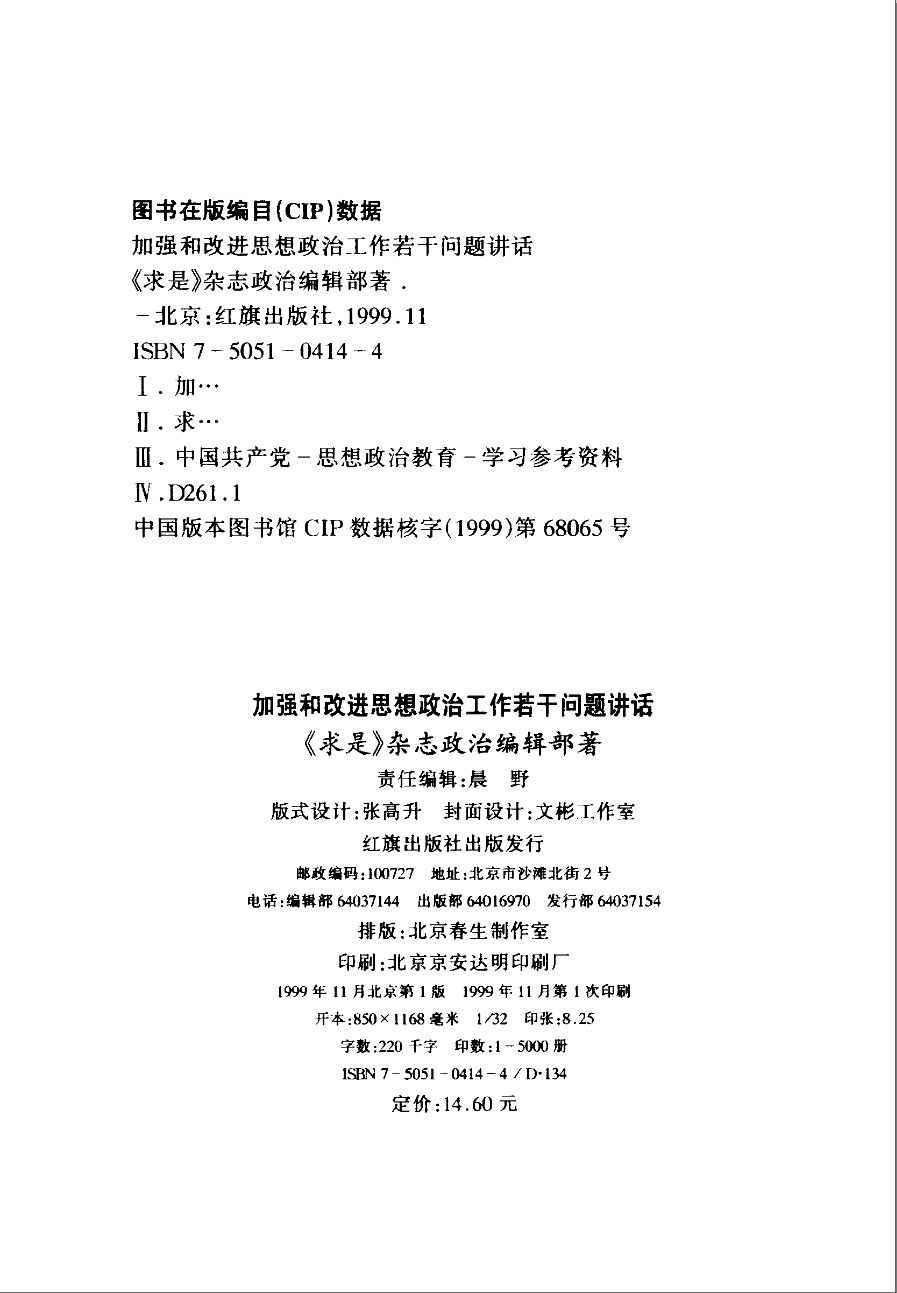 032_加强和改进思想政治工作若干问题讲话_求是杂志政治编辑部红旗出版社.djvu 7.20 MB