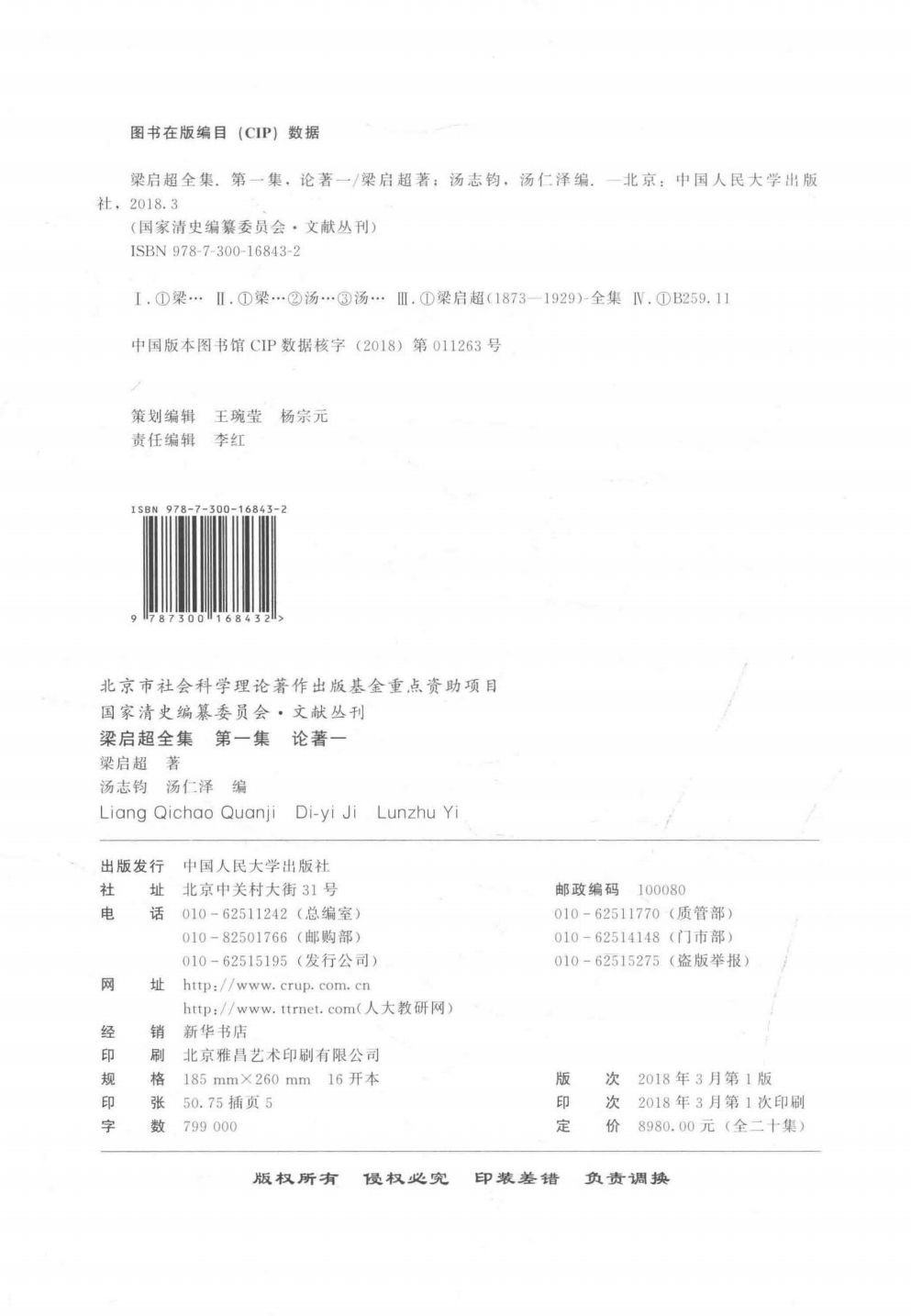 本书顾名思义,是梁启超的全集,辑录散见于各处的梁氏文辞初刊稿,如《清议报》、《新民丛报》、《晨报》等,涉及近代各种文献、档案,包括梁启超赴日时期的著述、书信,尤其是收入了新发现的“南长街54号梁氏函札”全部内容。同时,比对初刊稿和其他多种版本,进行了细致的校勘,对先前通行的梁氏文集(如《饮冰室合集》、《〈饮冰室合集〉集外文》)中的一些讹误,进行了校订。这部《梁启超全集》,其内容之全,点校之精,可说是迄今所见的梁氏文集中之最佳版本。