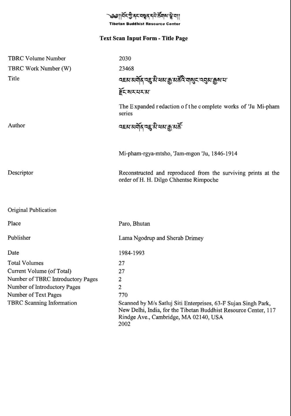 出版社:无,原本存放在不丹的巴若(Paro,Bhutan)