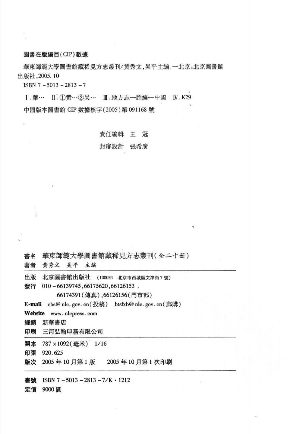 《华东师范大学图书馆藏稀见方志丛刊》 北京图书馆出版社 2005