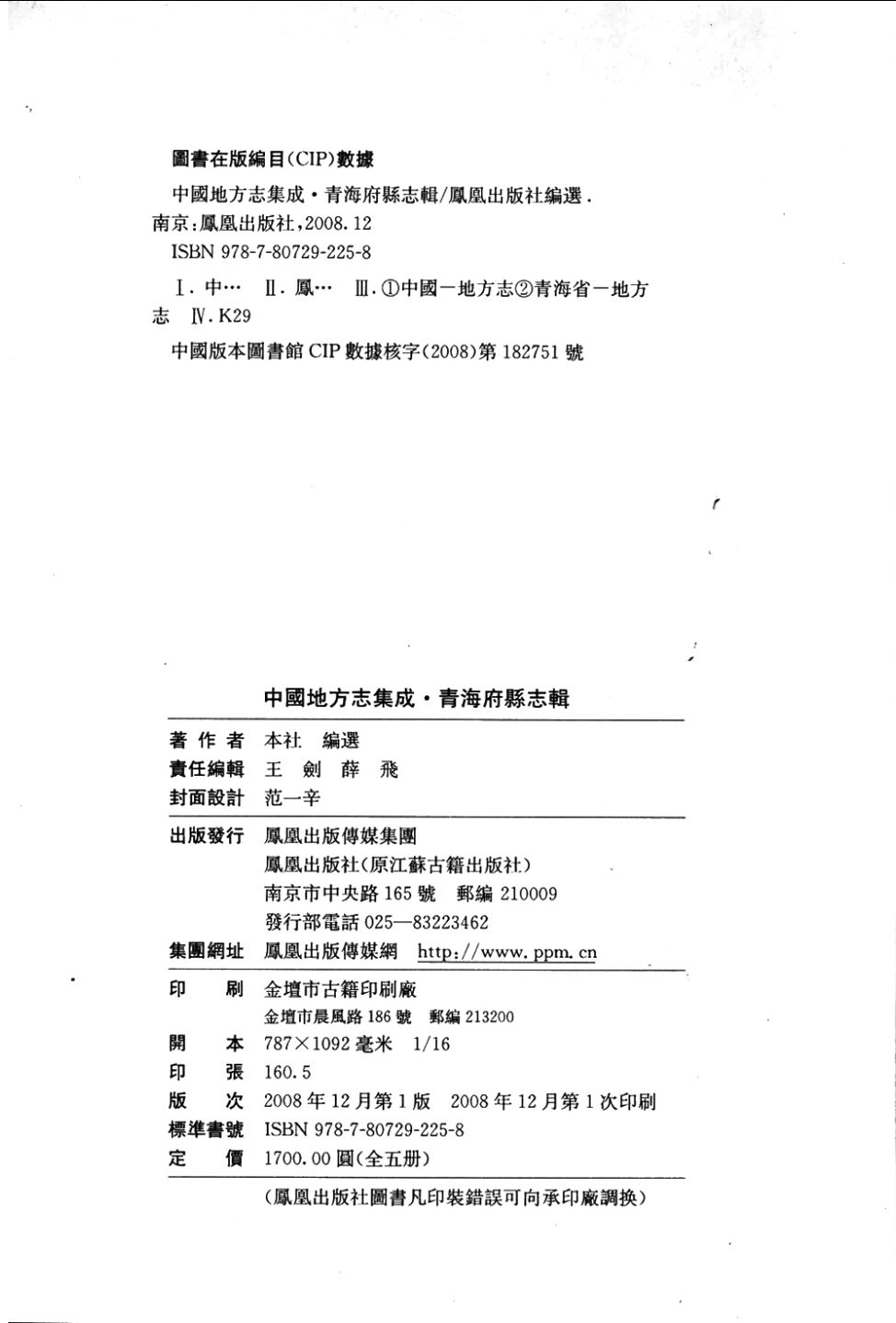 青海府县志辑(中国地方志集成系列)共5册