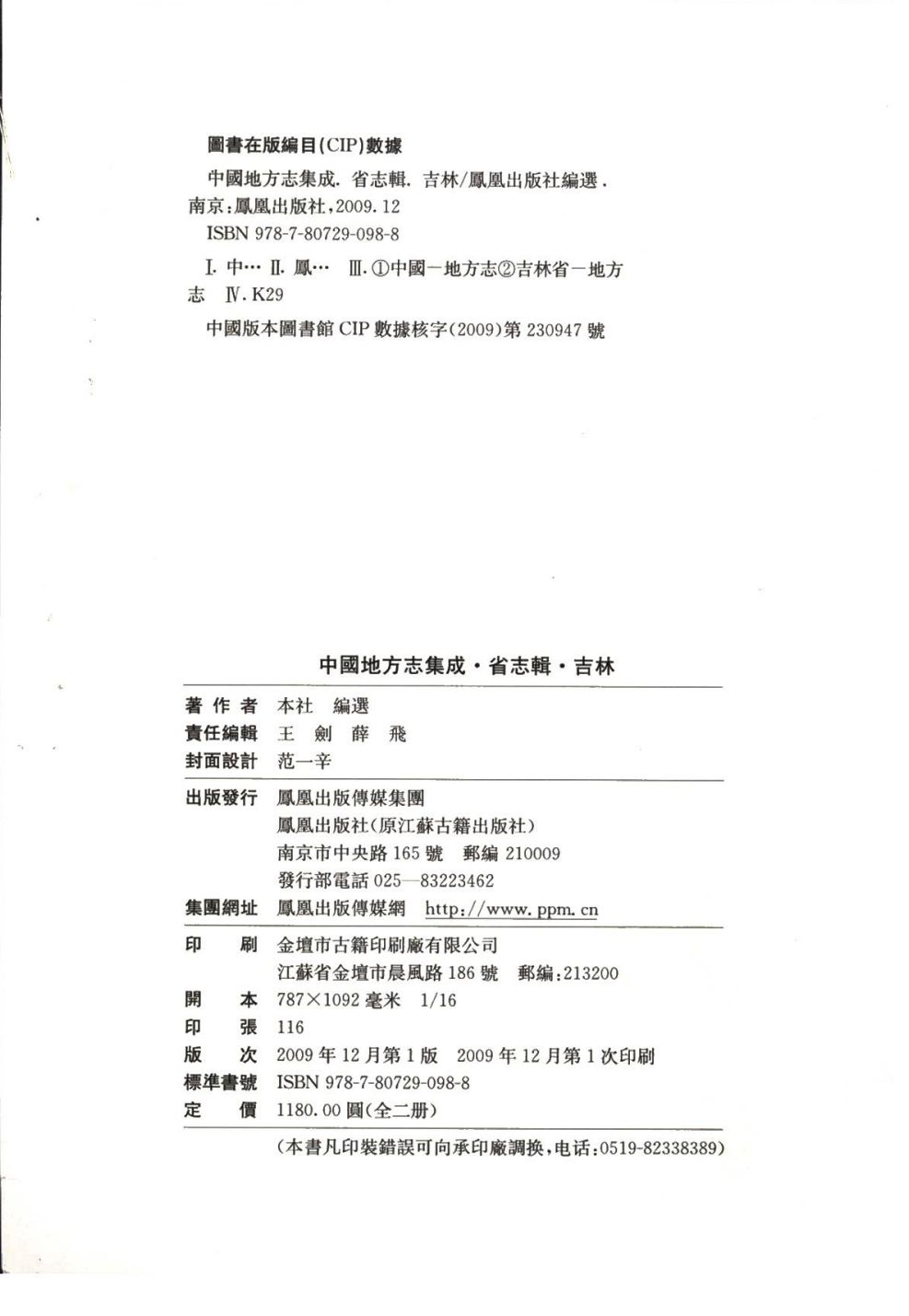 中国地方志集成(省志辑)吉林(全2册)