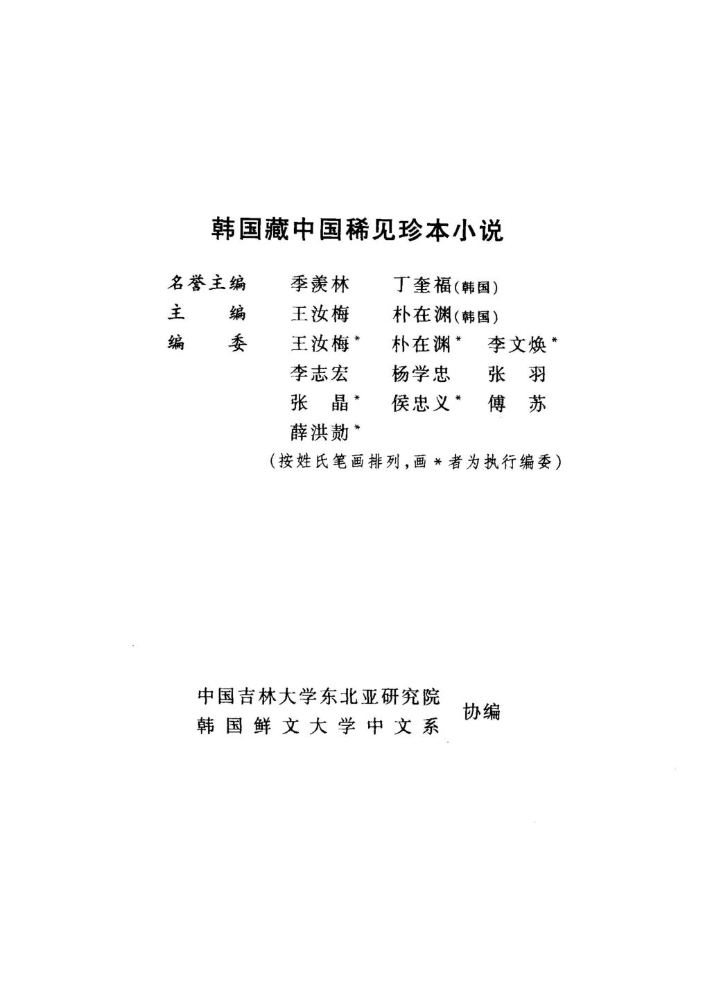 把韩国珍藏的而在中国业已失传或已残缺的古代小说整理出版,是中韩两国学者的共同心愿。在中国大百科全书出版社的赞襄下,中韩学者披沙拣金,历时5载,从韩国收藏中国古代小说中精选出稀见珍本或孤本10种,予以整理校点,值中韩建交5周年之际,纂成《韩国藏中国稀见珍本小说》,以飨中外学者,亦供广大读者鉴赏。
