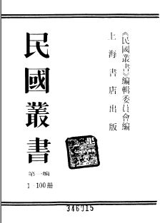 《民国丛书》由上海书店1989年出版发行,主要收录了中华民国时期在我国境内出版的中文图书。还酌情选收了同时期国外出版的中文图书。 本丛书共分十一大类:一哲学,宗教类;二,社会科学纵论类;三,政治,法律,军事类;四,经济类;五,文化,教育,体育类;六,语言,文字类;七,文学类;八,美术,艺术类;九,历史,地理类;十,科学技术类;十一,综合类。《民国丛书》原计划入编三千余种文献,分十辑陆续出版。待出齐后还将编制全书的总目录。但是该丛书自八九年出版第一辑迄九六年出版第五辑后便夏然而止,实际收书1126种。