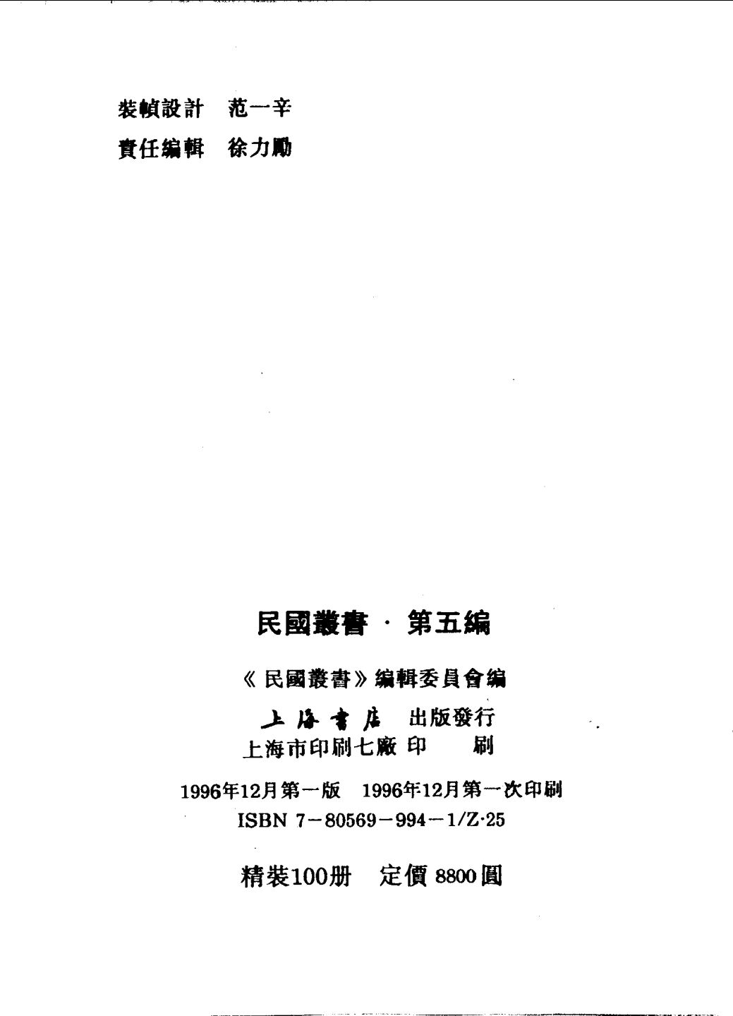 丛书主编: 《民国丛书》编辑委员会编