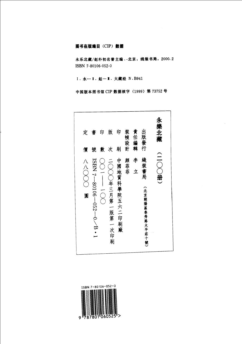 据史料记载,《永乐北藏》完成后只供皇家收藏,少量作为颁赐品,不许民间请印,故流传极少,又因为藏经古版自康熙后就不见记载,六百年后的今天,全世界仅存少量几套残本,而现存中国北京故宫博物院的这部《永乐北藏》便是其中之一,因极具价值,已成珍稀国宝。此次重印的《永乐北藏》是以故宫博物院的清宫旧藏原刻作为底本,由于底本年代久远,全书残缺五百余卷,虫蛀严重。为使本书得以重见天日保留原书的面貌,特以先进的数位制版技术,印刷品质一流,内文采取双色印刷,加套蓝色边框,方便阅读藏经,完全展现原书的质感与风貌。