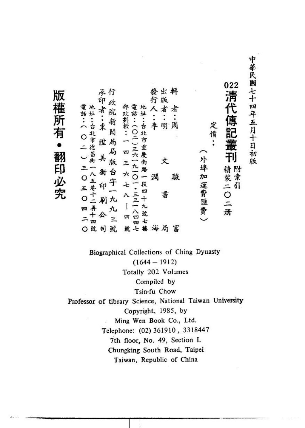 出版社:台湾明文书局出版