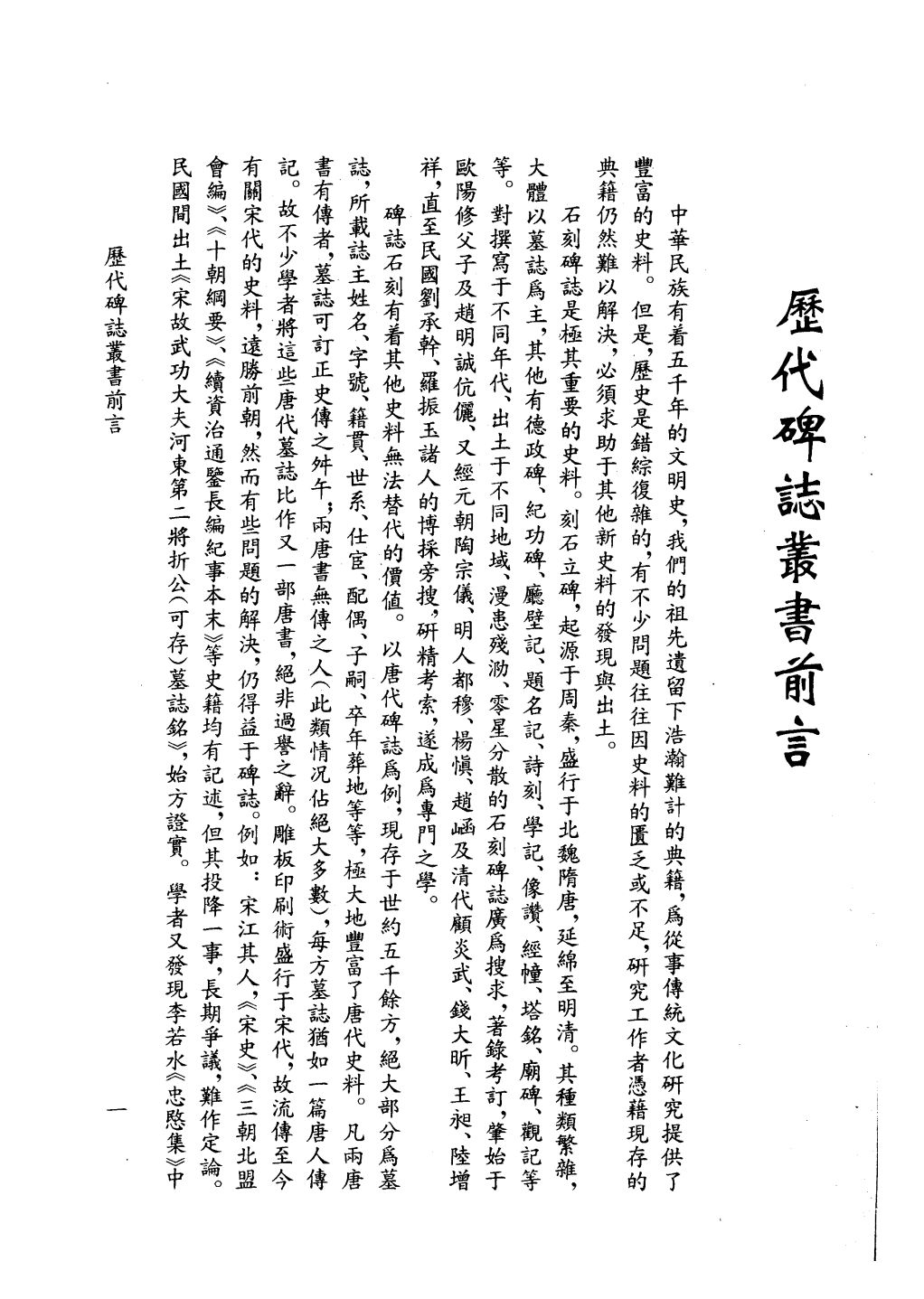 石刻碑誌是極其重要的史料。刻石立碑,起源于周秦,盛行于北魏隋唐,延綿至明清。其種類繁雜,大體以墓誌爲主,其他有德政碑、紀功碑、廳壁記、題名記、詩刻、學記、像讚、經幢、塔銘、廟碑、觀記等等。對撰寫于不同年代、出土于不同地域、漫患殘泐、零星分散的石刻碑誌廣爲搜求,著錄考訂,肇始于歐陽修父子及趙明誠伉儷、又經元朝陶宗儀、明人都穆、楊慎、趙崡及清代顧炎武、錢大昕、王昶、陸增祥,直至民國劉承幹、羅振玉諸人的博採旁搜,研精考索,遂成爲專門之學。