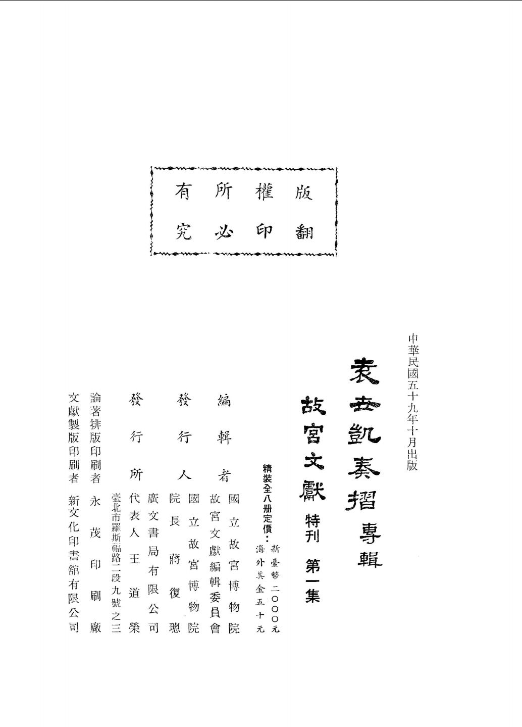 编辑者:国立故宫博物院故宫文献编辑委员会