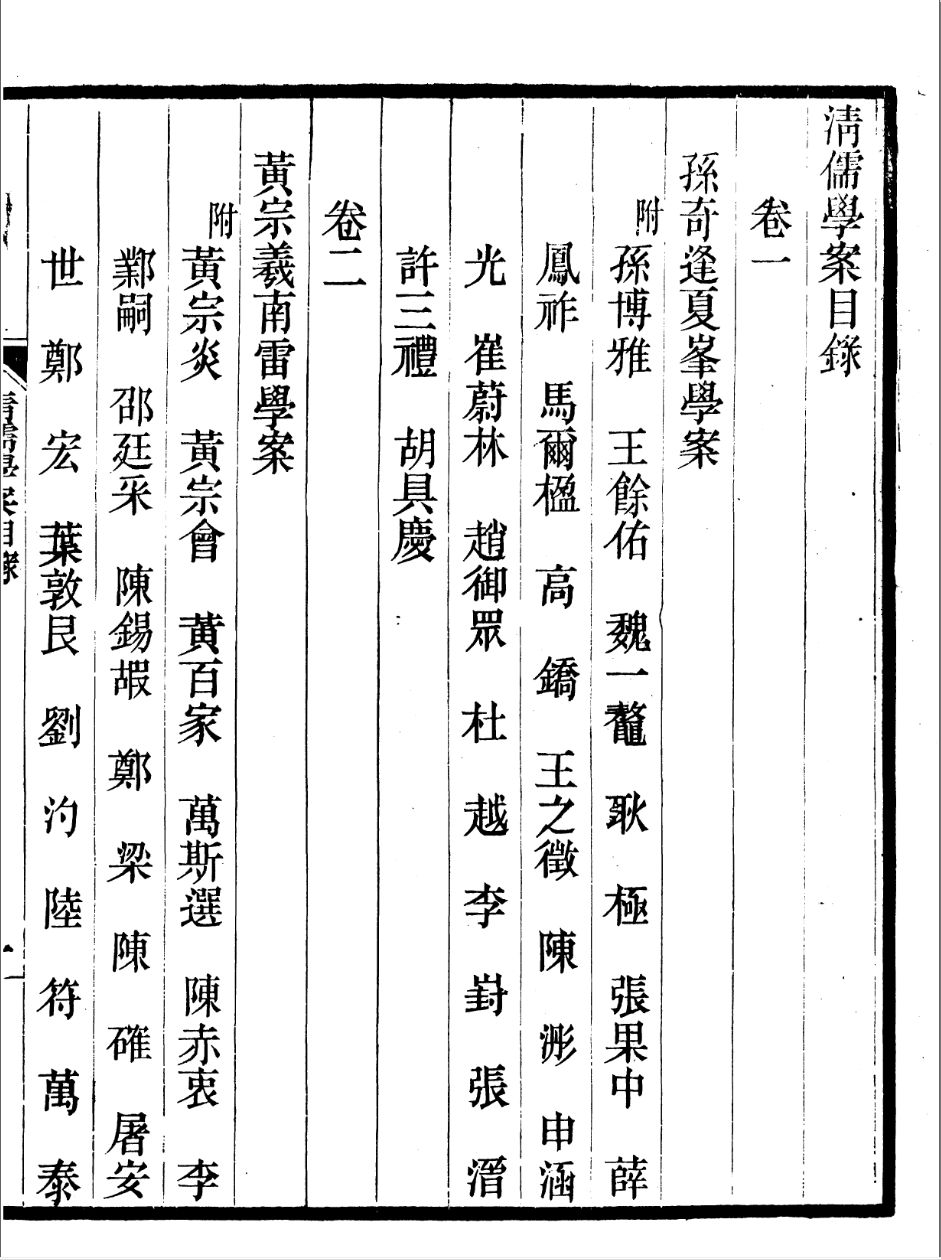 清儒学案:清儒学案208卷。民国徐世昌等编纂。《清儒学案》仿《明儒学案》和《宋元学案》的体例与宗旨,详记清代学术情况,凡编入正案179人,附案922人,另列诸儒68人,共收清代学者1169人。全书采取分头选编然后集中处理的办法,凡历时十余年(1929-1939)纂集而成,当时知名学人孙夏桐、王式通、金兆蕃、朱彭寿、闵尔昌、沈兆奎、傅增湘、曹章、陶洙等均先后参与其事。《清儒学案》是同类著作中收人最多、资料最全所学术专著,是研清代学术思想重要参考书。