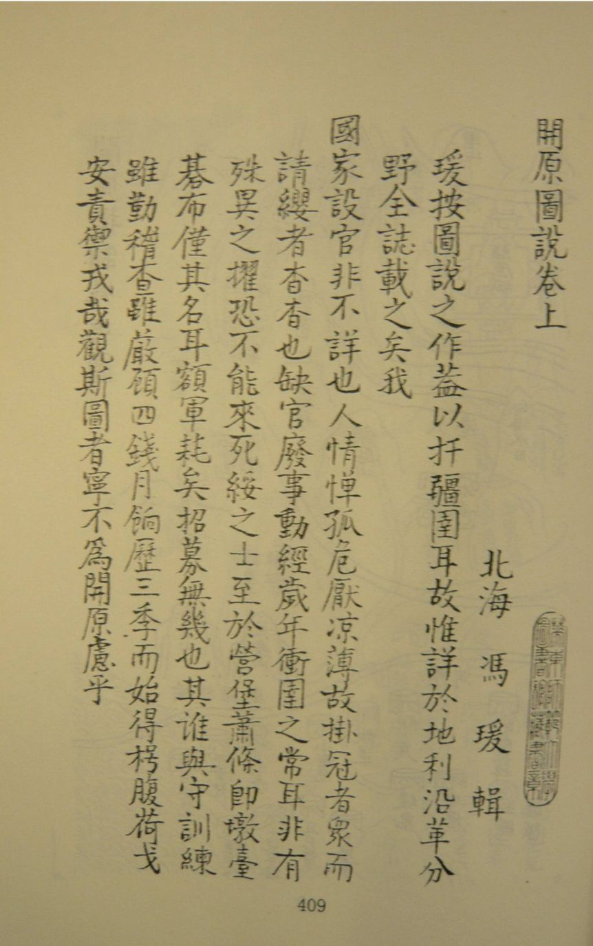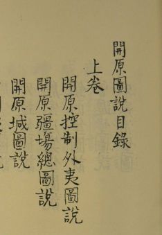 [万历]《开原图说》二卷,明冯瑗纂,无刊本,今存抄本4部,分别藏于华东师范大学图书馆、北京师范大学图书馆、上海图书馆、复旦大学图书馆。冯瑗,北海人,整饬辽东开原兵备道右参政。