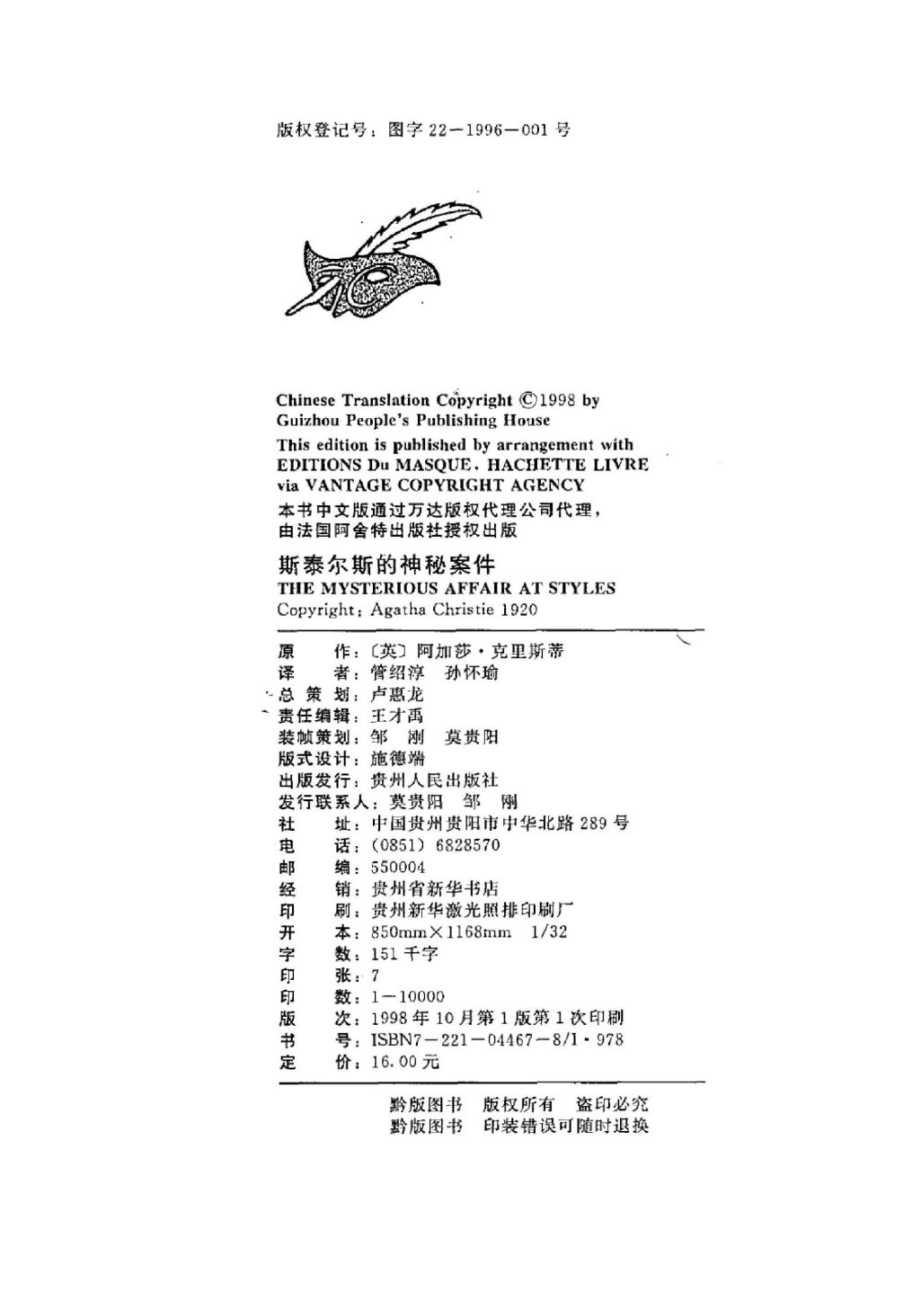 001阿加莎·克里斯蒂作品全集001 1920 斯泰尔斯的神秘案件 The Mysterious Affair at Styles(管绍淳、孙怀谕译,贵州人民出版社1998).pdf 71.62 MB