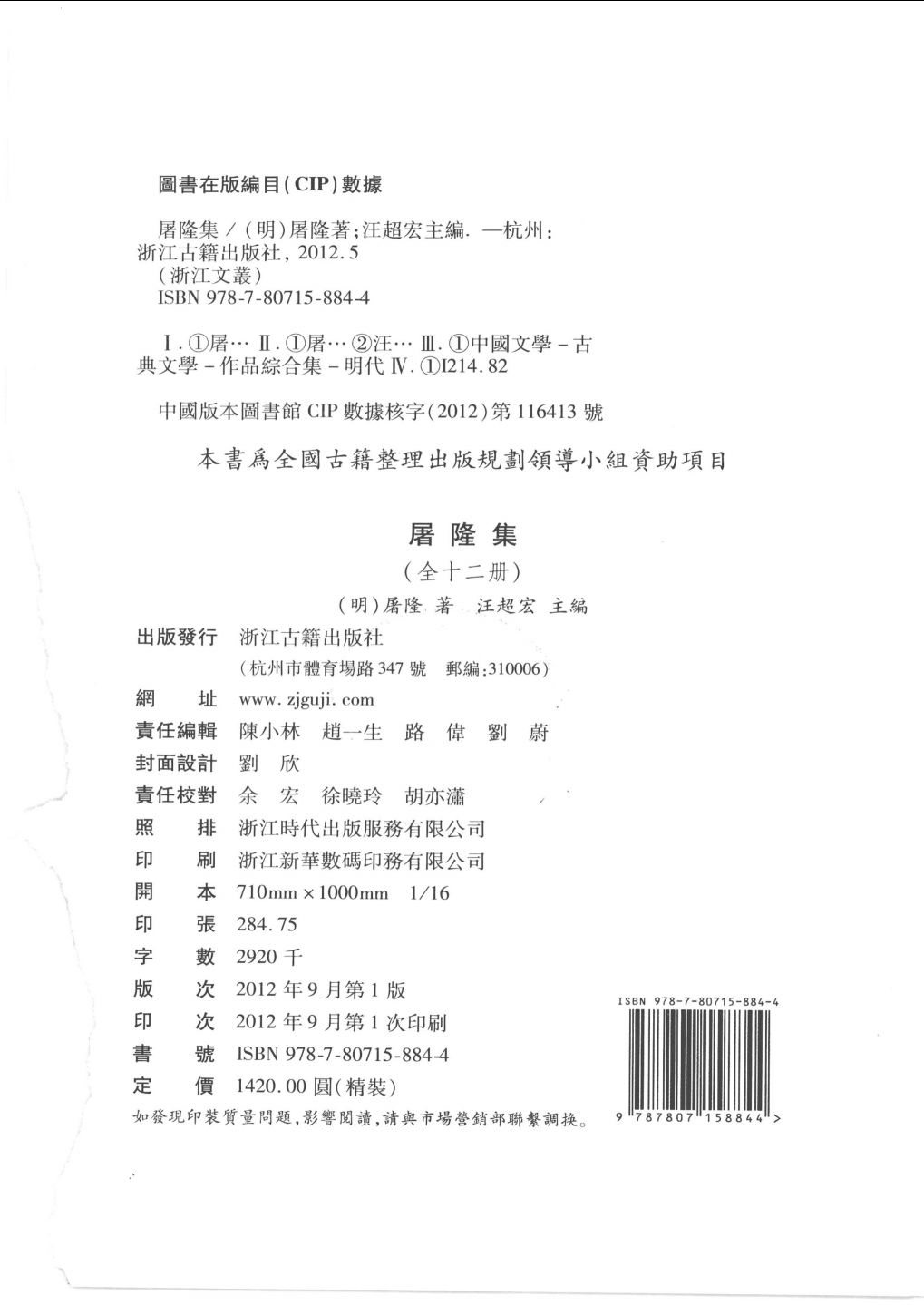 本書是屠隆作品首次全面深入的整理,對於我們瞭解晚明文人、文化等都有積極的意義。