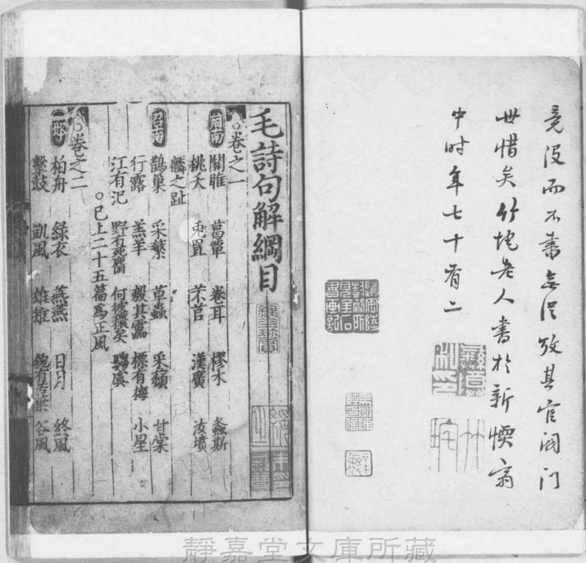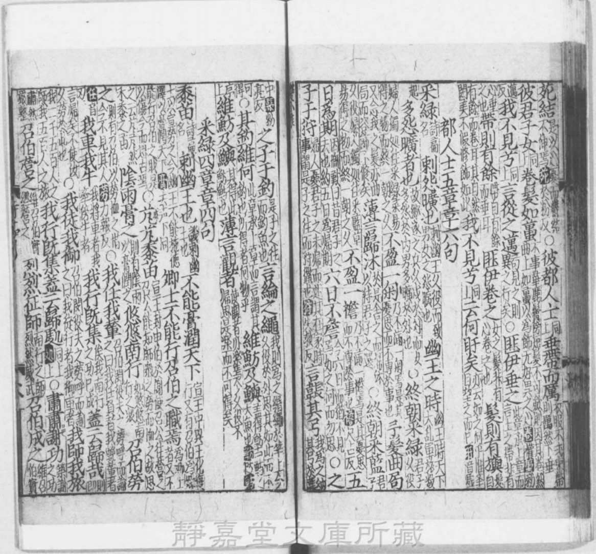 当工作人员燃明书库的灯光时,我们便跻身于当年归安陆氏的旧藏中了。文库对典籍的保藏,至为讲究,书架皆配以对开式的玻璃门,室内能够控制湿度,并能通风换气,但不装空调,也不用电风扇。我从书架上随手捡取一部朱熹的《诗集传》,系南宋宁宗、理宗时刊本,翻阅数卷,但见天头宽大,笔力遒劲,虽有后人写补,然墨光如漆。此真可谓满室皆是珍本秘籍,我这时忽然顿悟,似乎明白了八十年前日本人岛田翰登上“皕宋楼”,何缘会产生那样一种惊险和劫夺之心了。