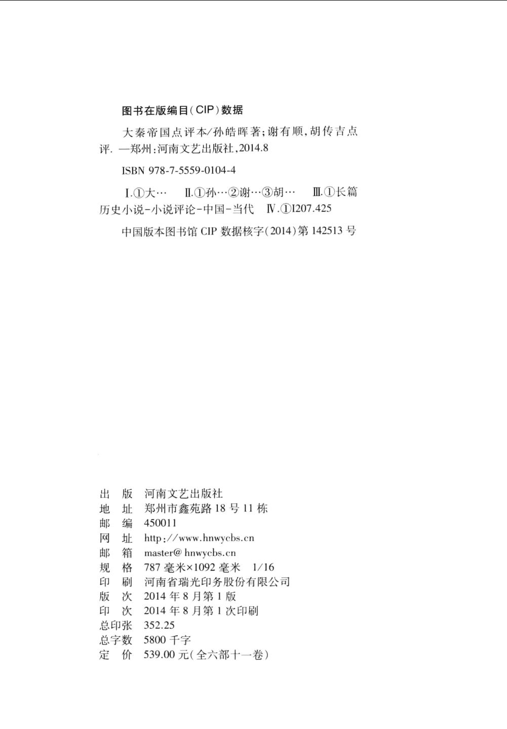 该书于2008年由河南文艺出版社全套出版,6部11卷