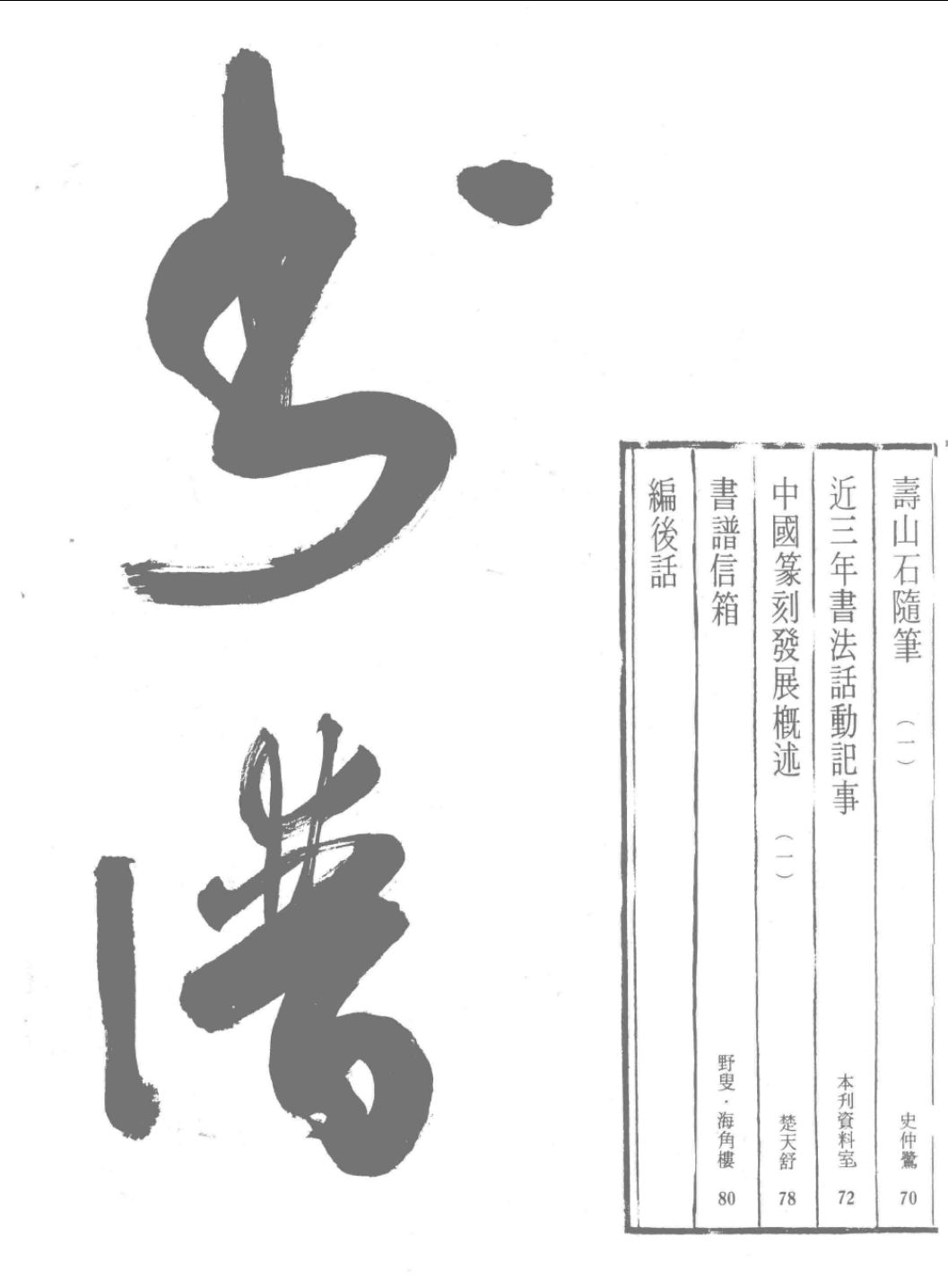 《书谱》杂志系一九七四年创办于香港的中国当代第一份书法专业期刊,一九九〇年停刊,二〇〇八年复刊。为华侨领袖梁披云先生及同好李秉仁、吴羊璧先生共同创办之书画界一部影响力出众的杂志。曾经发行二十多个国家与地区,对中国书法在当代的发展及海内外的传播影响甚巨,堪称当代书法复兴之基石及书法传媒之发端。其以“弘扬书学,嘉惠书林”为宗旨,内容宏富,佳作纷呈。既有书法理论探讨,亦有书史书家研究、名碑名帖介绍、书法教育、书法文化、随笔小品等。所涉广及中国大陆、香港、澳门、台湾以及日本、韩国、新加坡、伊朗、法国、美国等地书坛。汇集书法界、文化界大家学者、书家如郑逸梅、沙孟海、王蘧常、祝嘉、佘雪曼、徐邦达、启功、翁闿运、饶宗颐、周绍良、熊秉明、周颖南等专文佳篇。其珍贵的文献价值一直受到书法界和学术界的重视。