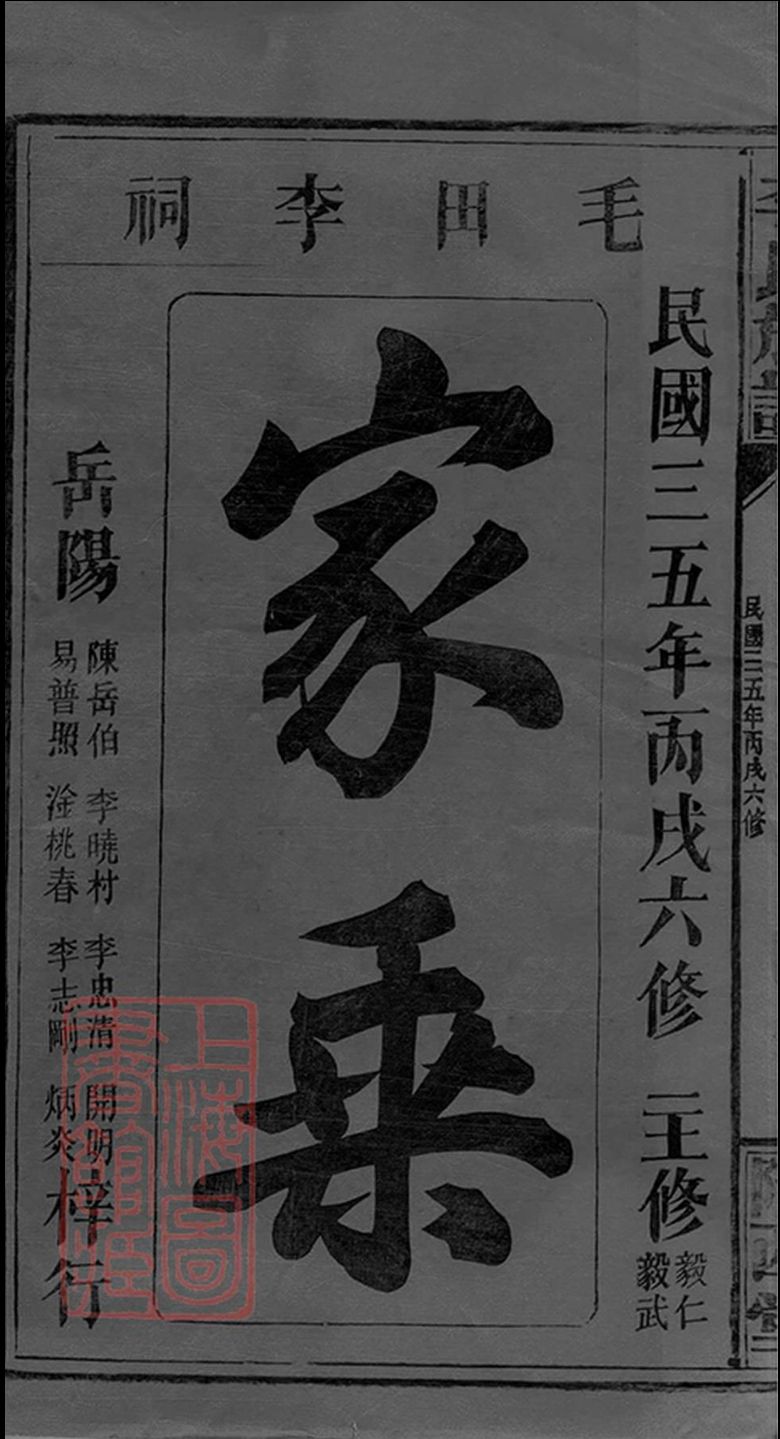 毛田李氏族谱