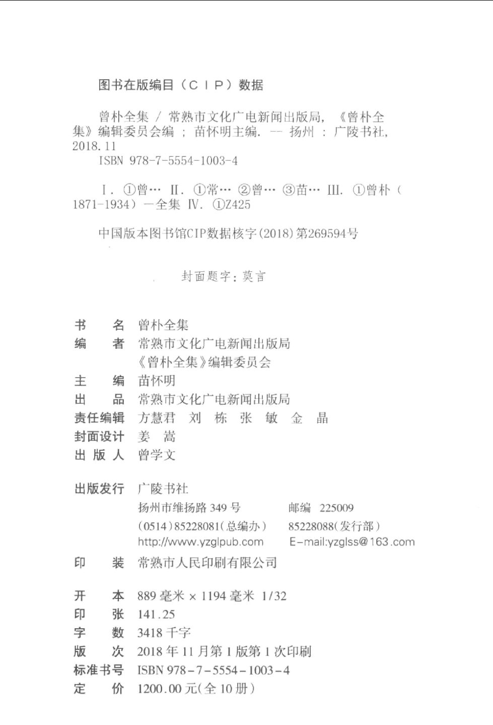 近代著名文学家曾朴著述汇编整理,收录其存世的小说戏曲、法国文学翻译、自创诗文、经史考证等著述文字,包括美国、日本等国馆藏资料。后附录其年谱。