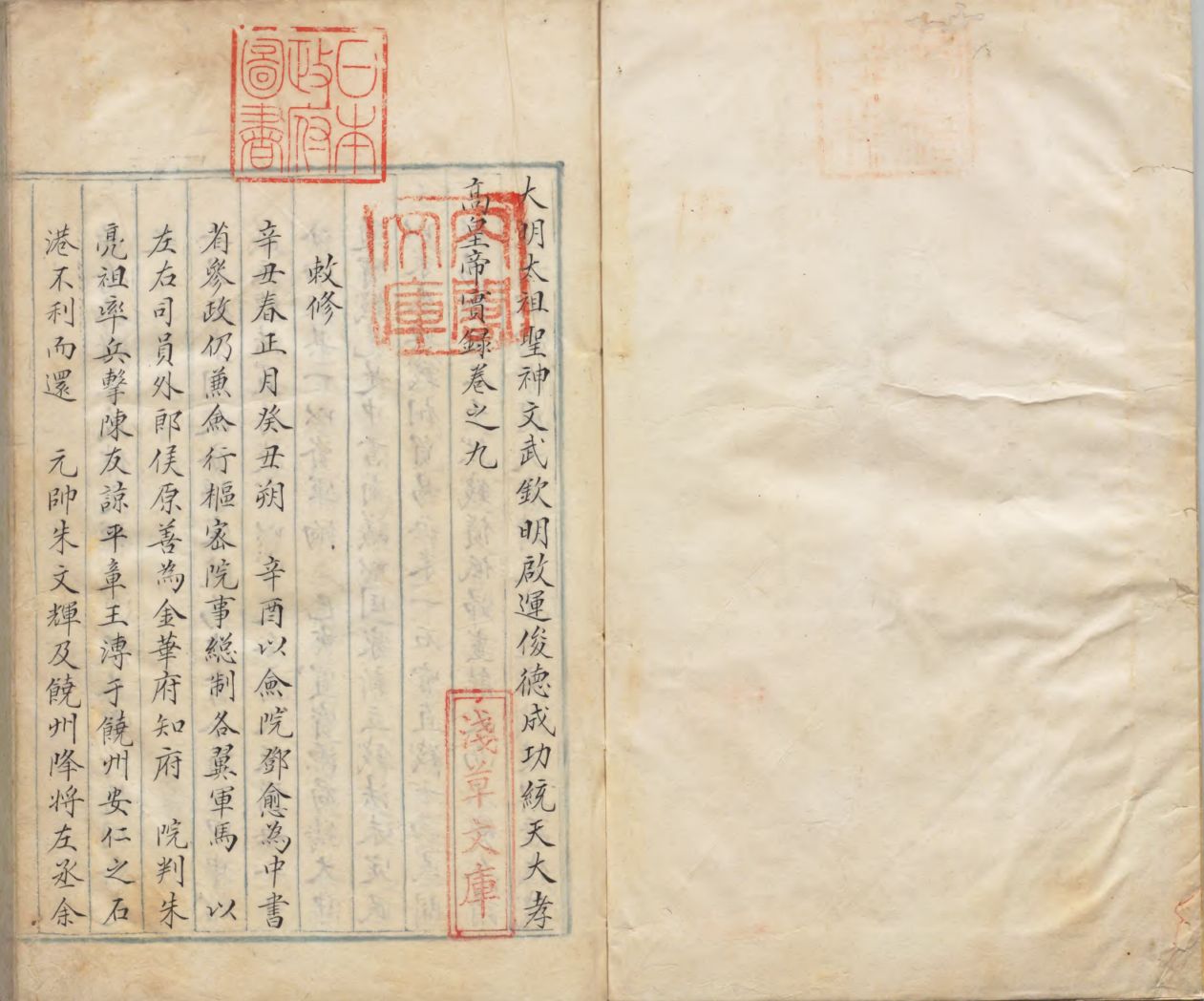 此是日本内阁文库所藏之《皇明实录》,全套501册,抄录于晚明时期,在清代乾嘉时期,由商贾携至长崎,先后藏于佐伯藩、昌平坂学问所等地,今藏日本内阁文库。此本是《明实录》现存之稀见版本,学人罕睹其面,