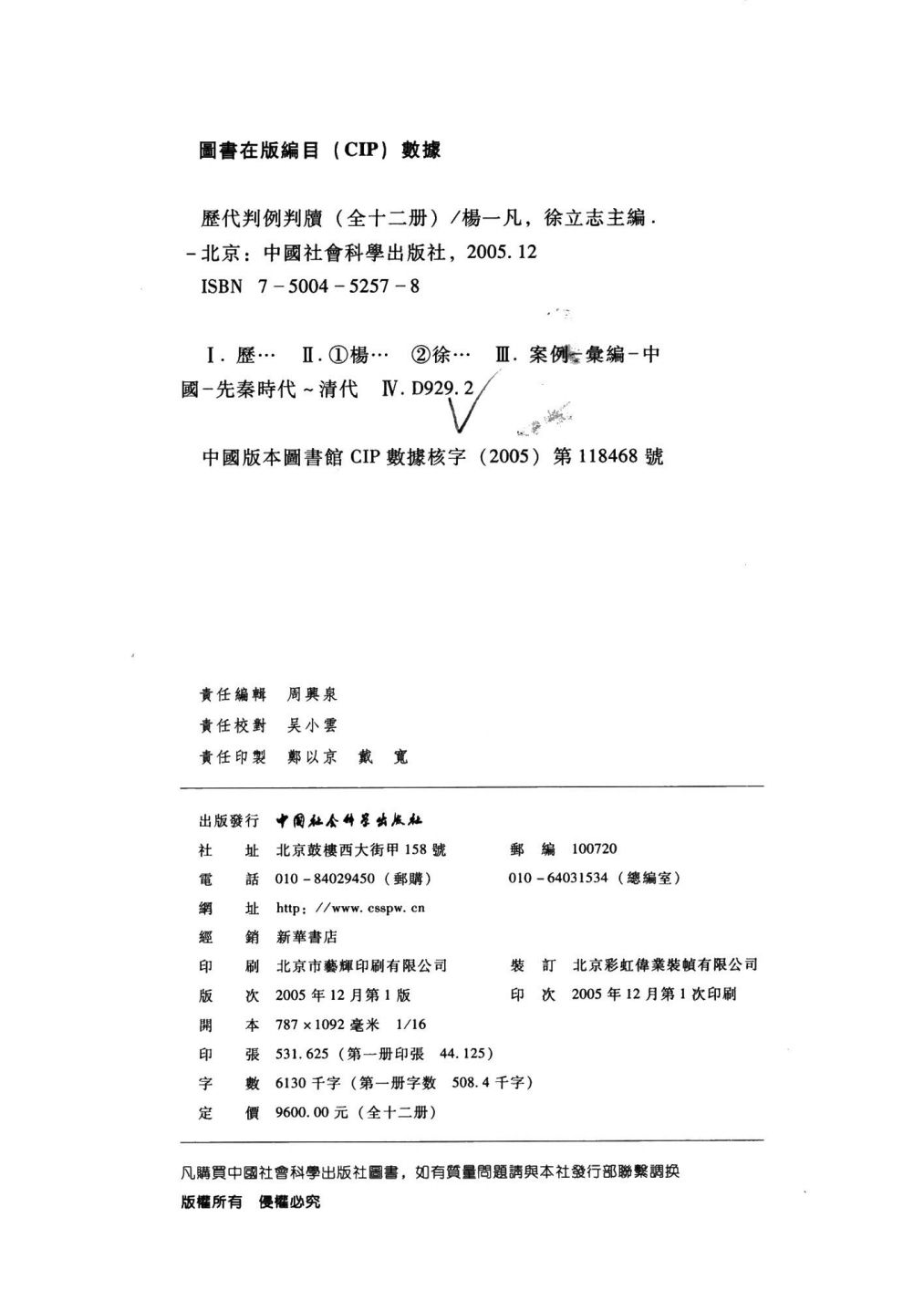 本书系中国社会科学院重点项目,2000年起实施,历时五年完成。收入文献53种,其中中国古代先秦至明清代表性的判例判牍文献43种,与研究明代以前判例判牍相关的著名案例集10种。这些文献大多版本稀见,有30种属于明代和明代以前的文献。