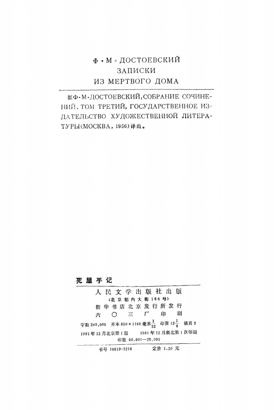 001[俄]陀思妥耶夫斯基选集1 死屋手记(曾宪溥译,人民文学出版社1981).pdf 230.96 MB