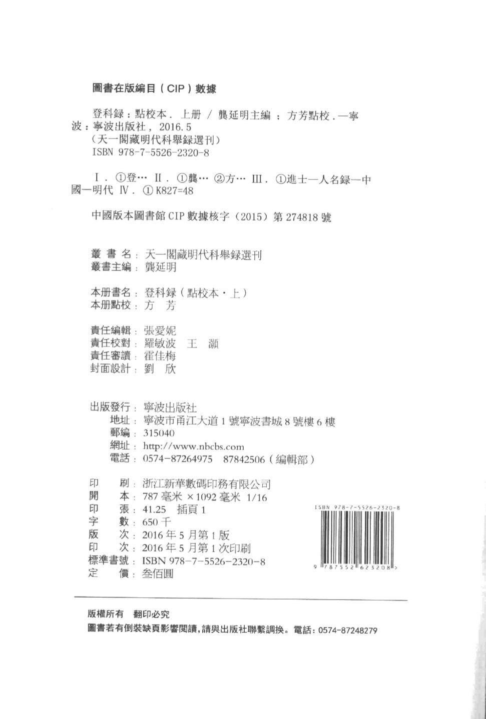 天一阁藏明代科举录选刊(点校本)共15册