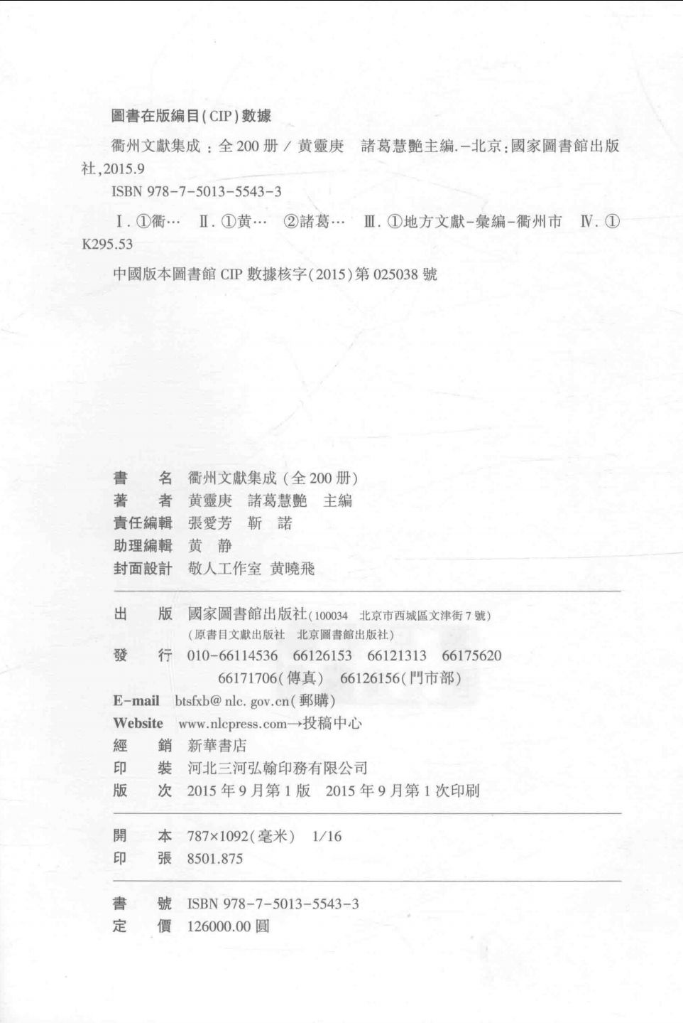 衢州文献集成(共201册)