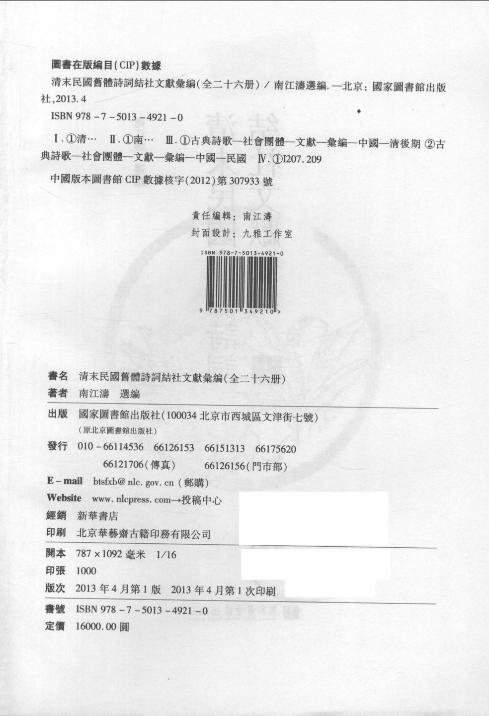 │清末民国旧体诗词结社文献汇编 01 南江涛 选编 北京:国家图书馆出版社 , 2013.04_14657511.pdf 407.34 MB