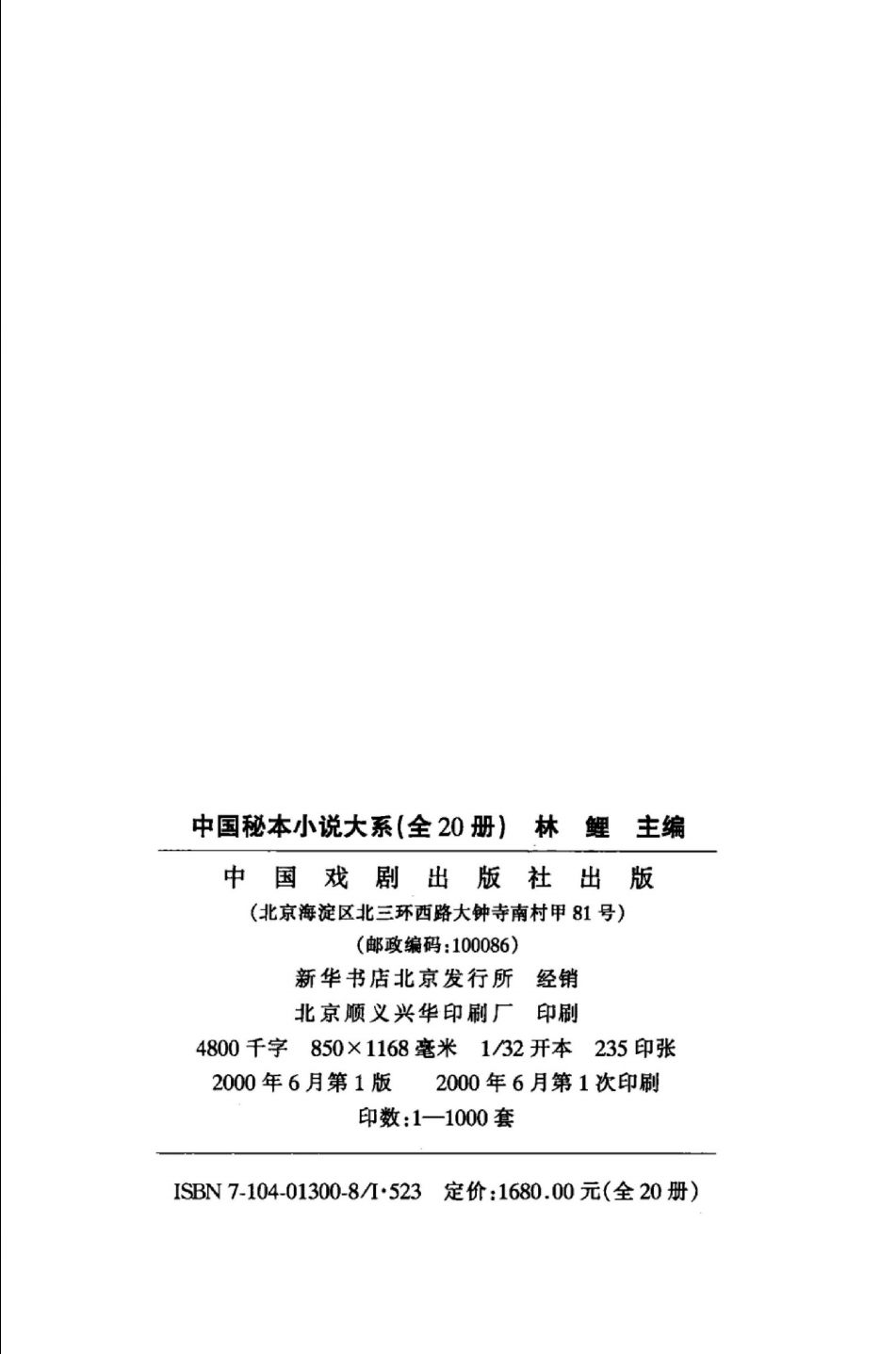 中国秘本小说大系(共20册)