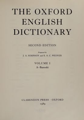 《牛津英语词典》被认为是当代最全面和最权威的英语词典,被称之为英语世界的金科玉律。1989年出版第二版,收录了301,100个主词汇,词汇数目达3.5亿个,二十卷,21,728页,305×225,书号为:978-0-861186-8,定价:759.00英镑(2009年)。词典亦收录了157000个以粗体菱形皮肤刷的组合和变形,以及16900个以粗斜体印刷的短语和词组,使得词典收录的词汇达到61万余个。另外,词典共列出137000条读音,2493000个词源,577000个互相参照和2412400个例句。