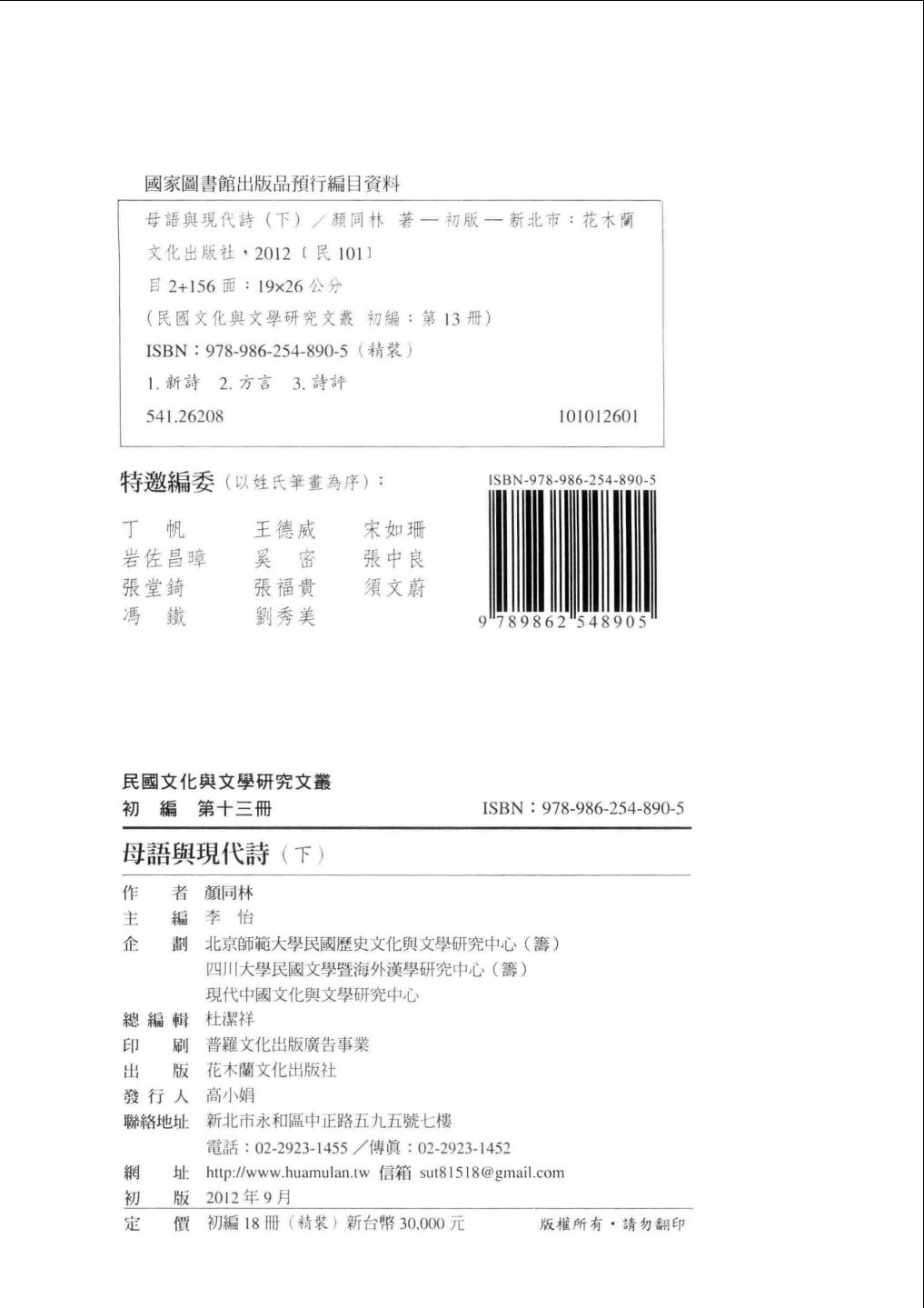 012民国文化与文学研究文丛 初编 第12册 母语与现代诗 上.pdf 95.80 MB