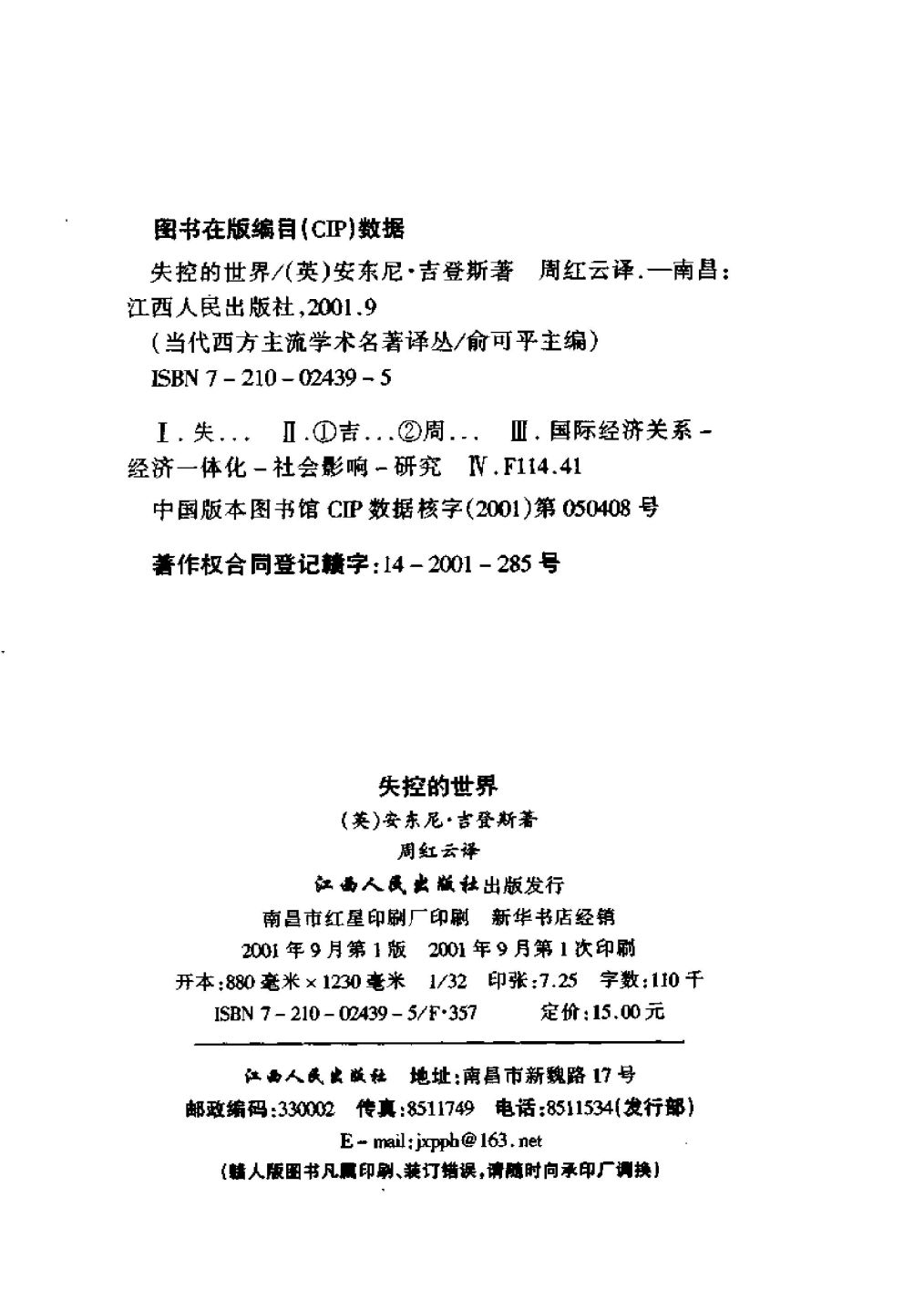 002《当代西方主流学术名著译丛》吉登斯:失控的世界.pdf 109.18 MB