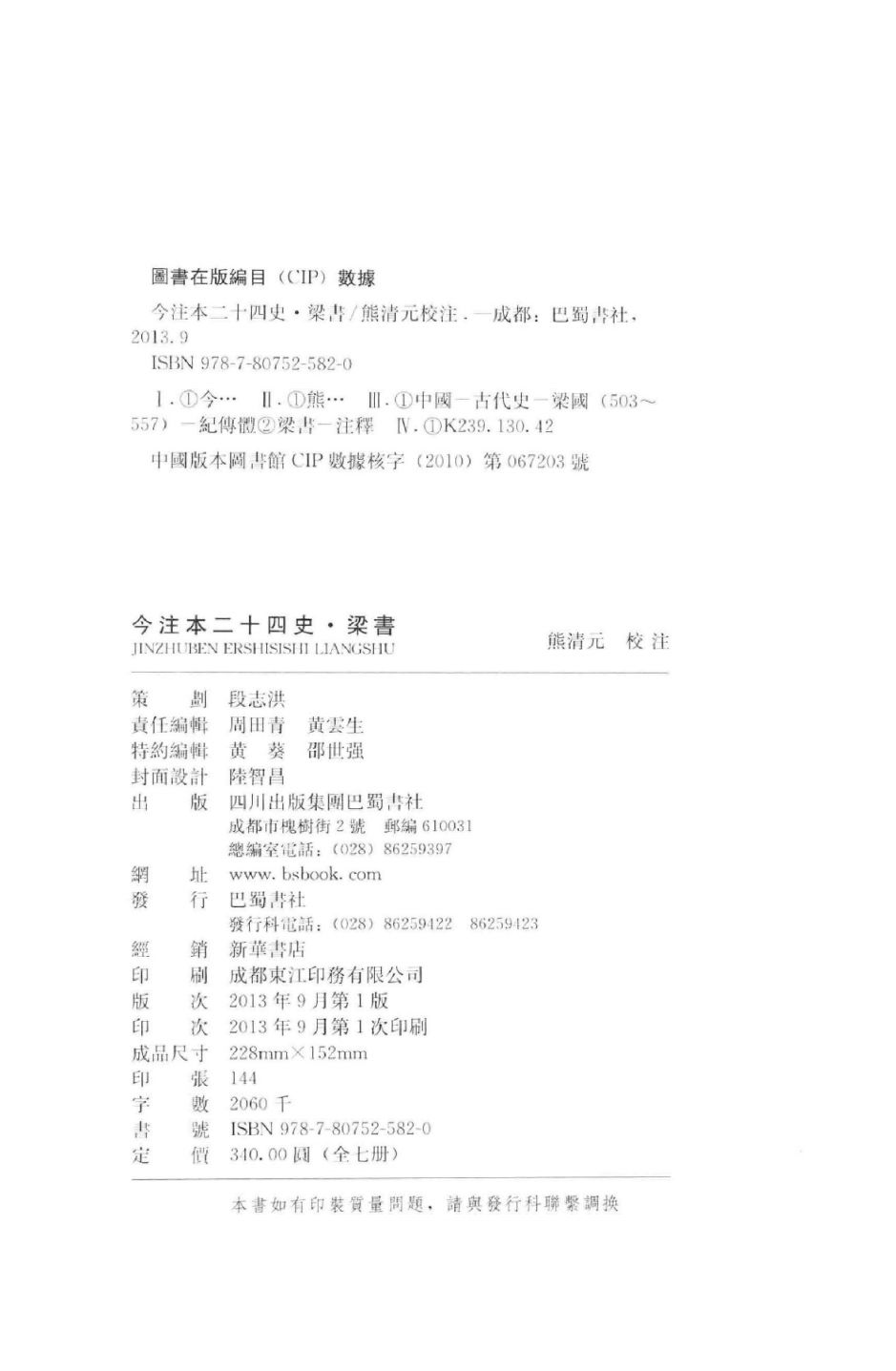 梁书(经注本二十四史)共7册