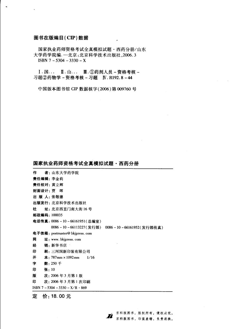 006875 國家臨床執業助理醫師資格考試訓練習題集 2012_專家編寫組編著_北京科學技術出版社_2012.01_P259.uvz 66.20 MB