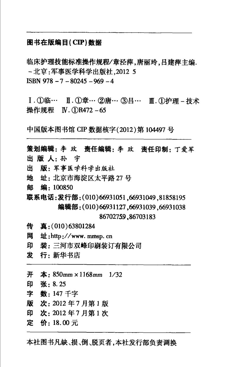 012411 臨床護理常規_李秀雲,汪暉主編_人民軍醫出版社_2012.04_P519.uvz 51.31 MB