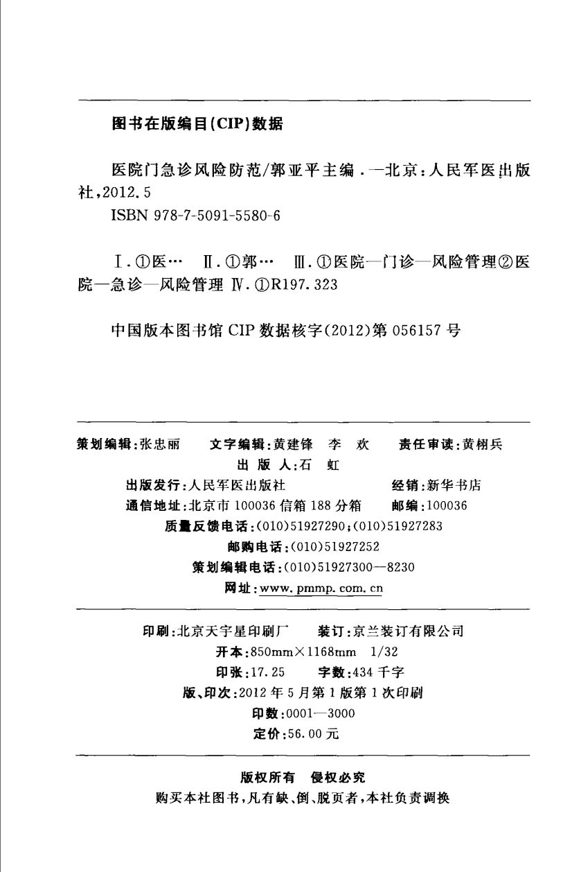028411 醫院門急診風險防範_郭亞平主編;柳忠全,陳長英,胡煒,徐學功,周華,劉建超副主編_人民軍醫出版社_2012.05_P527.uvz 46.27 MB