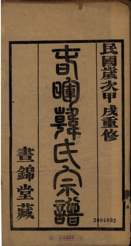 002660春暉韓氏宗譜十六卷.沈樹垣編.民國二十三年鉛印本.2004992-0001.pdf 85.89 MB