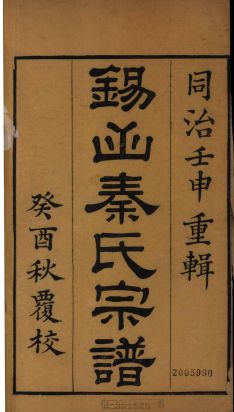 019075錫山秦氏宗譜十二卷首一卷.清秦淑曾等編.清同治十一年活字印本.2005990-0001.pdf 90.31 MB