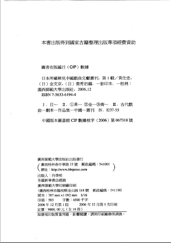 001日本所藏稀见中国戏曲文献丛刊 第一辑 第一册 黄仕忠,(日)金文京,(日)乔秀岩编 桂林市:广西师范大学出版社 2006.pdf 262.65 MB