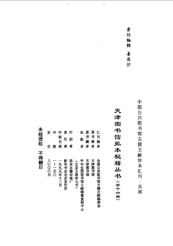 丛书名称:中国公共图书馆古籍文献珍本汇刊