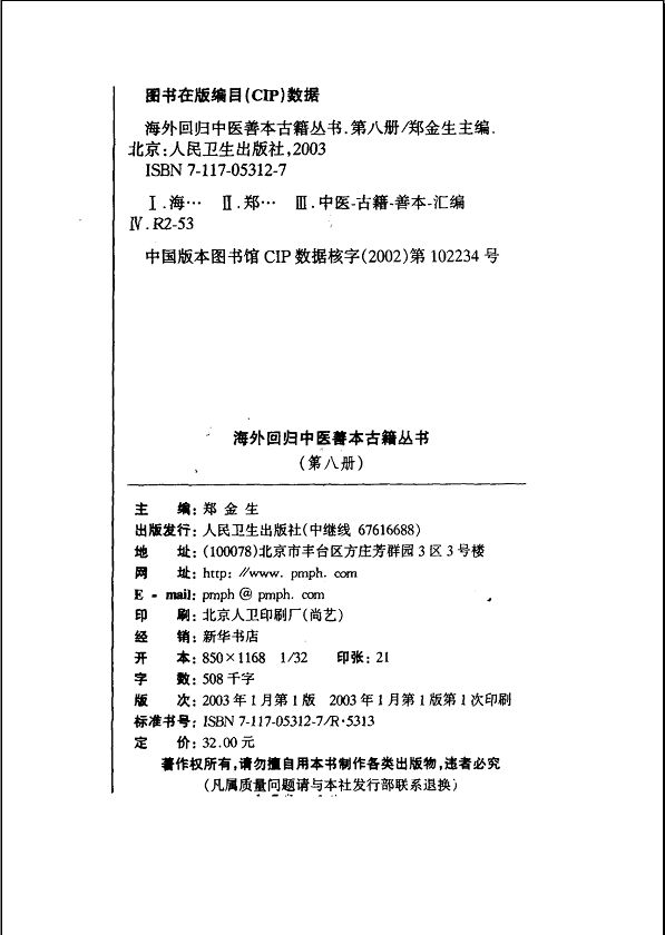 008海外回归中医善本古籍丛书 第八册 郑金生主编 人民卫生出版社 2003年01月第1版.pdf 193.85 MB