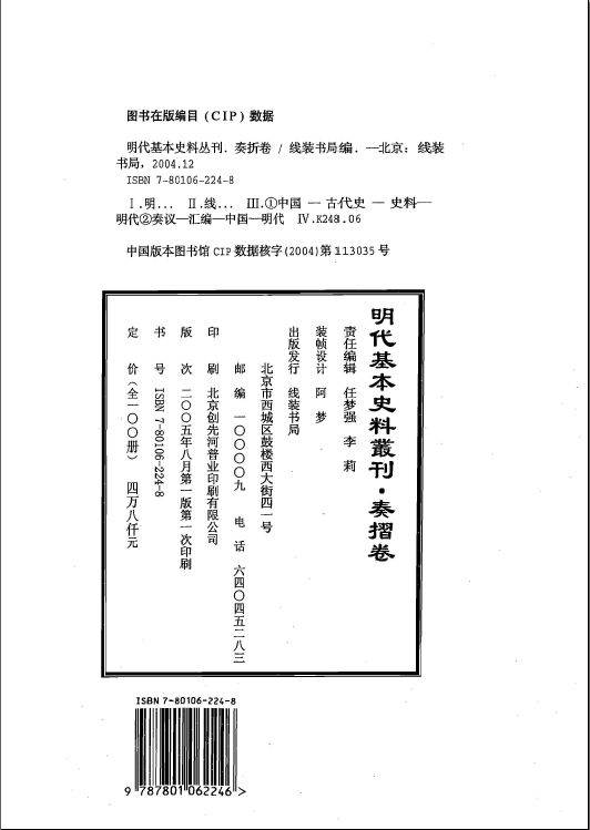 提要:明代基本史料丛刊 · 奏摺卷(1-100册) ,线装书局, 2004年