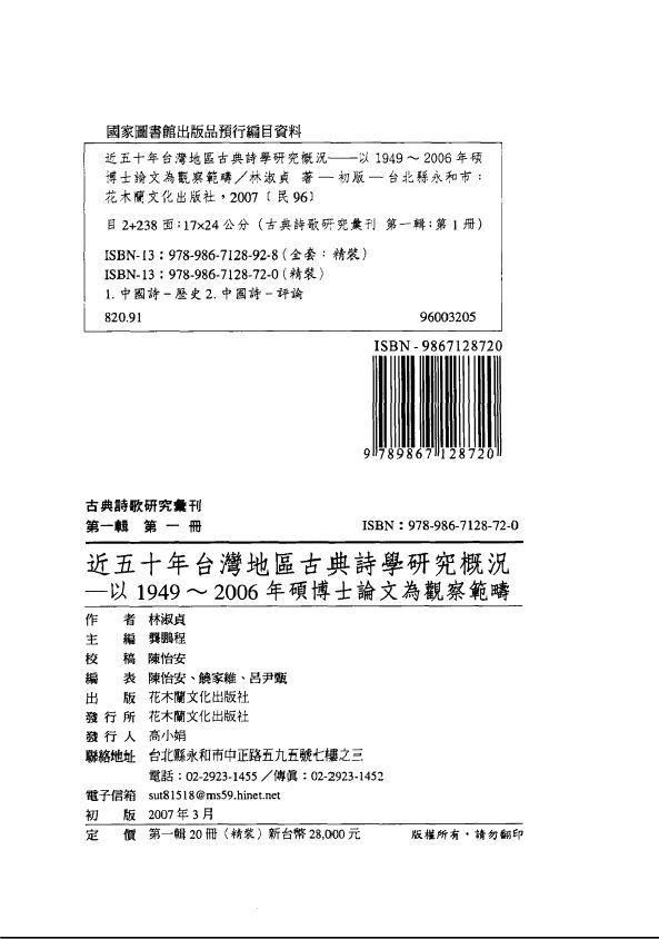 ││001古典诗歌研究汇刊 第一辑 第1册 近五十年台湾地区古典诗学研究概况——以1949-2006年硕博士论文为观察范畴.pdf 124.06 MB