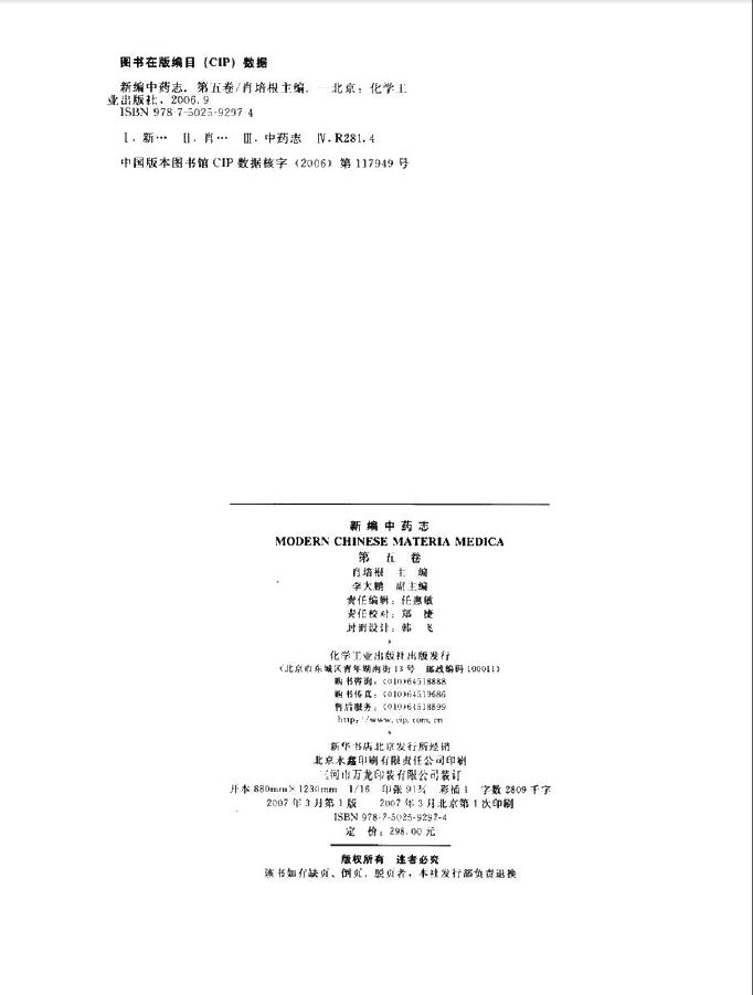 005新编中药志 第五卷 肖培根主编 化学工业出版社 2007.pdf 201.37 MB