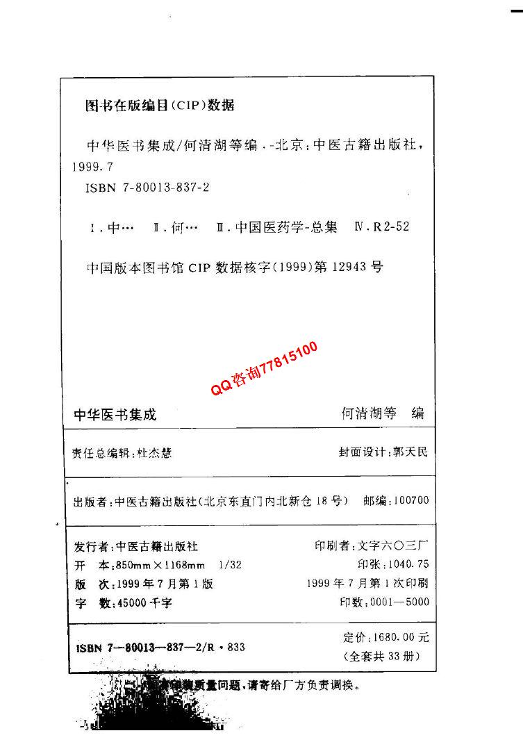 中华医书集成(全33册)