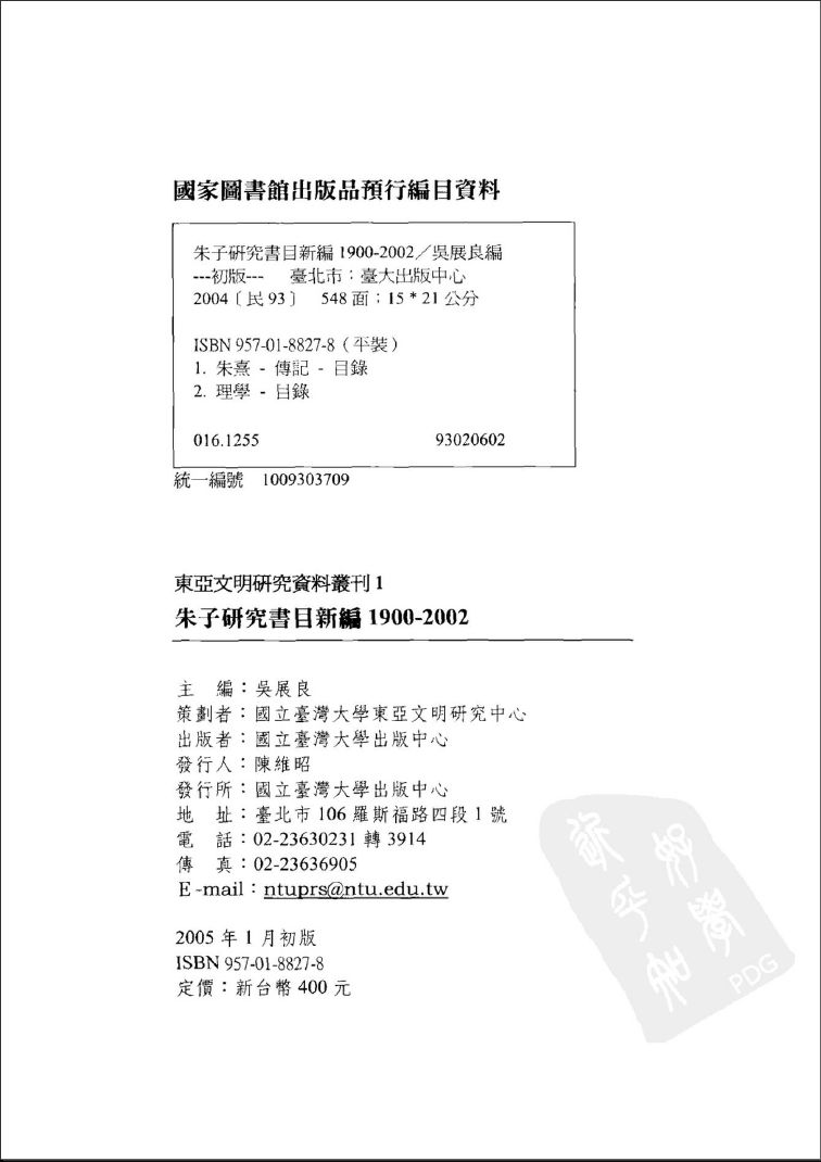 01 东亚文明研究资料丛刊一__朱子研究书目新编__1900-2002_吴展良编.pdf 268.83 MB