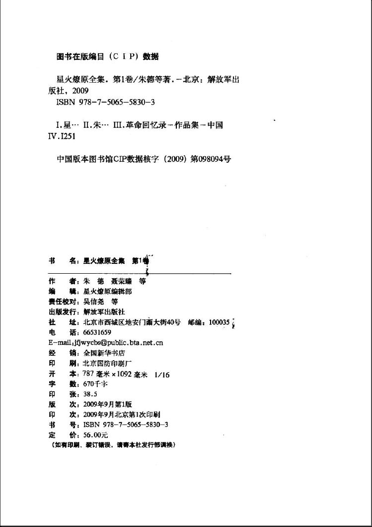 出版发行:解放军出版社 , 2009.09