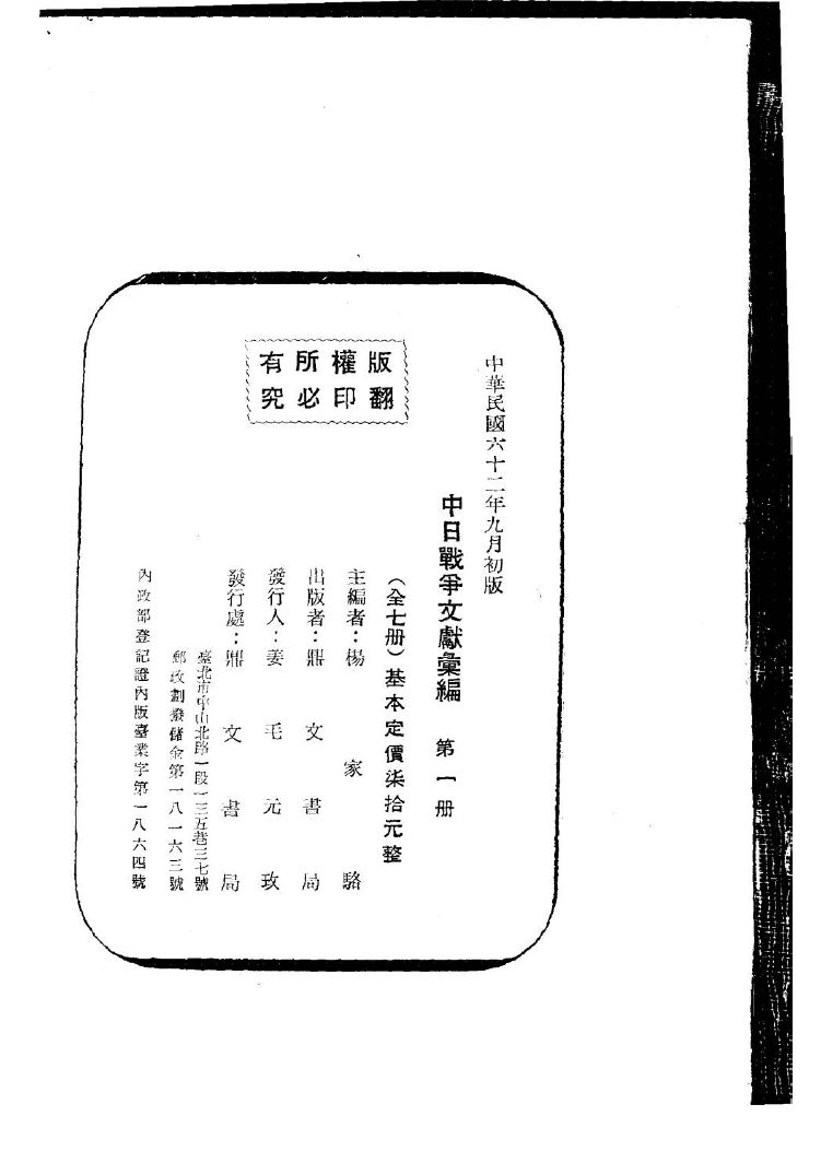 001中日战争文献汇编 第1册_杨家骆主编_鼎文书局_1973年09月第1版.pdf 270.95 MB